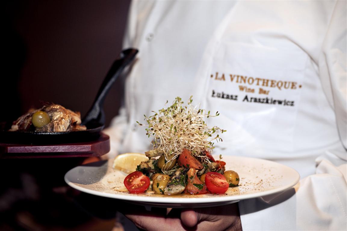 Jak dobrze, że przechodząc jakiś czas temu koło sklepu na Grzybowskiej, już późną porą, widząc przez szybę „że otwarte” wstąpiliśmy na „co słychać”. Nie minęła godzina, a już siedzieliśmy z lampką wina w towarzystwie właściciela - Mirka Marczewskiego, wśród cieszących oko win na klimatycznie podświetlonych półkach, z chilloutową muzyką w tle i delikatnym zapachem unoszącym się znad skwierczących smakowicie krewetek. A gdzie? No właśnie – dla nas to też była niespodzianka - Wine Bar La Vinotheque przy Hotelu Hilton. Wino, menu, atmosfera, obsługa – tworzą świetnie zbalansowany kupaż. Co do win nie mieliśmy wątpliwości, ale to co szef kuchni Łukasz Araszkiewicz wyczynia, a właściwie wyczarowuje w skromnej kuchni, przeszło nasze najśmielsze oczekiwania – a sporo już jedliśmy i widzieliśmy… Karta menu to równie starannie dobrana kolekcja smaków. Steki pretendują do najlepszych w Warszawie, a i inne miasta powinny się niepokoić… plastry wędzonego łososia w pikantnym sosie z pomarańczy uwodzą… wspomniane wcześniej krewetki skwierczą… i nawet
