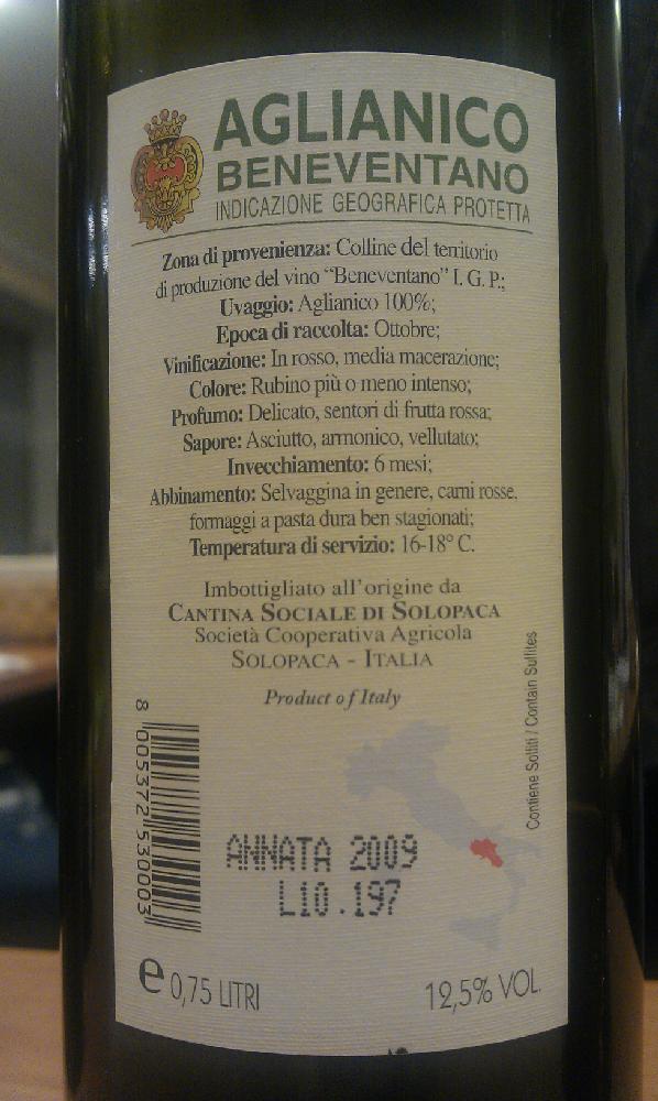 Aglianico Beneventano Cantina Sociale di Solopaca 2009