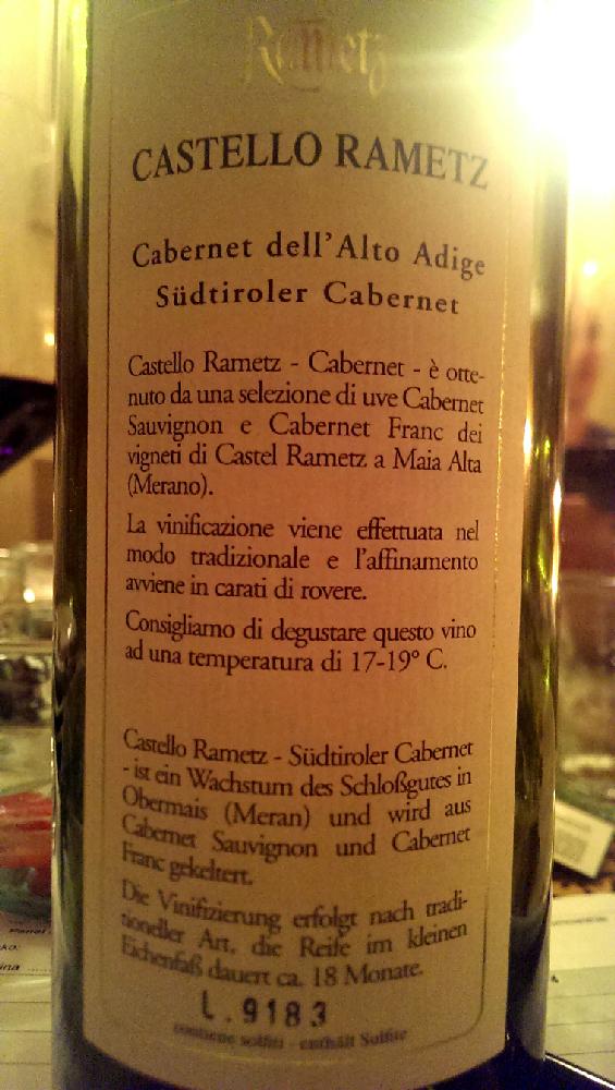Cabernet dell'Alto Adige Sudtiroler Castello Rametz 2006