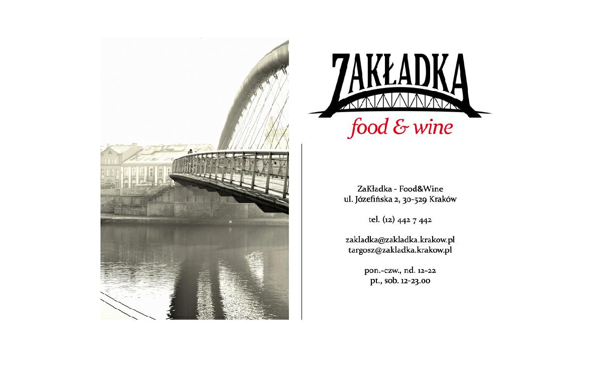 Degustację win hiszpańskich z nowej oferty Biedronki mieliśmy przyjemność przeprowadzić w nowo otwartej restauracji Zakładka Food&Wine przy ul. Józefińskiej 2 w Krakowie http://zakladka.krakow.pl/, dodatkowo mieliśmy również okazję przedpremierowo sprawdzić kulinarne aspiracje Szefa Kuchni, którym jest Rafał Targosz http://rafaltargosz.pl/ . Przynajmniej ta część wypadła … znakomicie ! Trudno lepiej opisać klimat kulinarny niż przedstawia to Renata Targosz: „Kuchnia ZaKładki jest prosta i wybitnie smaczna. Czerpie z najlepszych tradycji francuskiej kuchni -paryskich bistro i brasserie. Nie brakuje w niej również lokalnych produktów, których różnorodność będzie systematycznie powiększać się. Kuchnia ZaKładki to radość nie tylko jedzenia, ale i gotowania. Dlatego jedzenie, które serwujemy niesie same pozytywne emocje” . Szczególnie miejsce to ucieszy miłośników powrotu do również polskich tradycji kulinarnych, mamy możliwość spróbowania policzków, ozorków, ogonów wołowych … , ale bez obaw znajdziemy też stek, pstrąga czy kaczkę. Z radością sprawdziłem część menu i za kilka dni mam zamiar powtórzyć tą przyjemność.