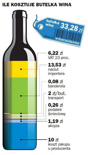 Nie wiem skąd takie dane, z mojego doświadczenia wynika, że koszt zakupu wina, które na półce ma cenę 30 zł to poniżej 1 Euro. Najtańsze wina mają największą marżę i są to w znakomitej większości produkty winopodobne solidnie "dosmaczone" siarczynami. Np. Prosecco La Gioiosa dostępne w Tesco w cenie około 30 zł w Metro we Florencji kosztuje 1,99 Euro, więc jaka jest cena producenta a jaka marża Tesco?! Koszt transportu także jest nieaktualny, poza tym zależy od ilości palet, podatek akcyzowy w wysokości 1,19 zawiera już koszt banderoli, poza tym ten koszt (banderoli) odlicza się potem od tegoż podatku. Najlepszy stosunek ceny do jakości mają sklepy importerskie i mali importerzy, i żeby nie było - tak także jestem małym importerem, znam wielu podobnych i znam ich politykę cenową. W każdym razie cieszę się, że Wyborcza propaguje małych importerów a nie zlewki w z supermarketów.