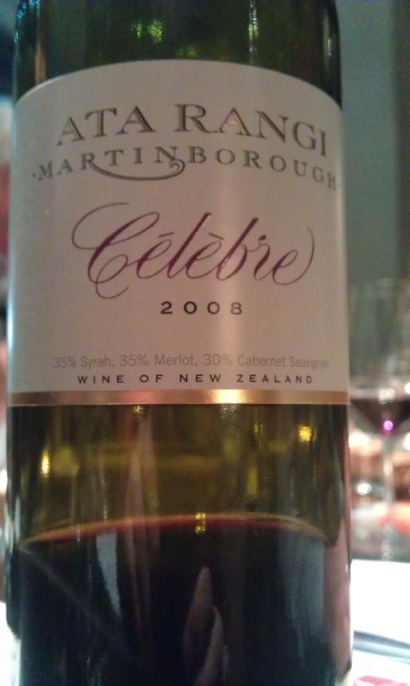 Celebre Ata Rangi 2008 Wino o bardzo ładnej, wiśniowej i oleistej barwie. W zapachu wyczuwalne przetworzone, czerwone owoce (wiśnie, śliwki i czarna porzeczka). W ustach niestety rozczarowuje. Wyczuwalny alkohol, beczka, skóra i lekka goryczka. W tej cenie trochę rozczarowuje.