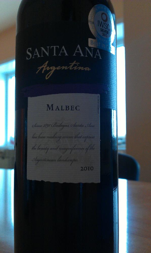 Malbec Bodegas Santa Ana 2010; Mendoza, Argentyna Wino ciemne, matowe. Dużo cienkich, szybko spływających łez. Pachnie żywicą, dymem, wiśniami. W smaku wiśnie, czarna porzeczka, wędzone owoce, papryka. Wyczuwalne nuty pieprzu. O takich winach mówi się, że są okrągłe.