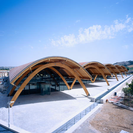 Łuki Bodegas Protos Wytwórnie win zdają się gustować w prostych rozwiązaniach architektonicznych o dużej skali. Hiszpańska Bodegas Protos jest tego idealnym przykładem. Pięć zwodniczo prostych, gigantycznych łuków skrywa najnowocześniejsze urządzenia do produkcji wina. Łuki są nie tylko imponujące, ale też niezwykle funkcjonalne. Temperatury w Hiszpanii są bardzo wysokie, a wino gorąca nie lubi. Ogromne zadaszenie osłania szklaną konstrukcję, która z kolei skrywa, a jednocześnie odsłania, podziemną wytwórnię wina i piwnice.