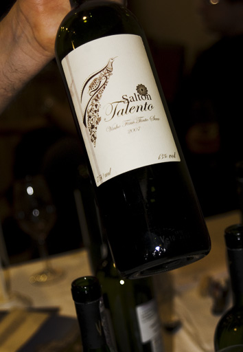 Malvasia i jak zauważa Vagner to wino z trzech odmian zaliczanych do najbardziej aromatycznych winorośli na świecie i… czułem je wszystkie, bo czułem w tym winie mnóstwo. Bardzo aromatyczne, o bogatym bukiecie kwiatów i słodkich owoców. Można odczuć wiele przyjemnych aromatów, które po zamieszaniu nabierają wyjątkowej ekspresji. Wyczuć można brzoskwinię, dojrzałe banany, cytrusy, płatki róż. Wino w smaku jest bardzo delikatne i, jak już wspomniałem, półwytrawne. Kwasowość jest zrównoważona i orzeźwiająca, wszystkie elementy smaku dają harmonijne wrażenie. Wieloszczepowy, tym razem z (innej) beczki Salton Talento 2007, ze szczepów Tannat, Cabernet Sauvignon, Merlot to czerwone i wytrawne wino o mocnej i ciężkiej strukturze. Wino dojrzewa w baryłkach z dębu francuskiego 12 miesięcy. W pierwszej chwili podczas degustacji pojawia się mnóstwo czerwonych owoców z czarną porzeczką na czele. Następnie dają się odczuć kawa, wiśnie, śliwki. Wino jest złożone i eleganckie, żaden z aromatów nie dominuje, czyniąc je bardzo harmonijnym. Oczywiście wyczuwalna lekka gorycz dodaje uroku. W ustach rozpoznać można aromaty czarnej porzeczki, tytoniu, wanilii, drewna. Dostarcza bogatych doznań, a kończy się długim przyjemnym finiszem…