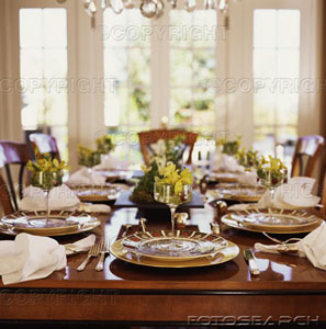 Główna ozdoba stołu Powinna być niska, żeby nie zasłaniała współbiesiadników siedzących naprzeciwko. Prawdziwe owoce, żywe kwiaty i świece. Nic sztucznego, w końcu to wieczór prawdziwych emocji i smaków.