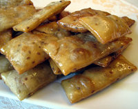 Składniki 100 ml oliwy z oliwek skórka otarta z 1 cytryny 15 gr ziaren anyżu (niekoniecznie) 100 ml białego wina 60 ml likieru anyżowego (albo niecałe 60 ml wódki zmieszane z dwiema łyżeczkami esencji anyżkowej) 250 gr mąki około 500 ml) oleju rzepakowego do smażenia 250 gr miodu 1 łyżeczka wody