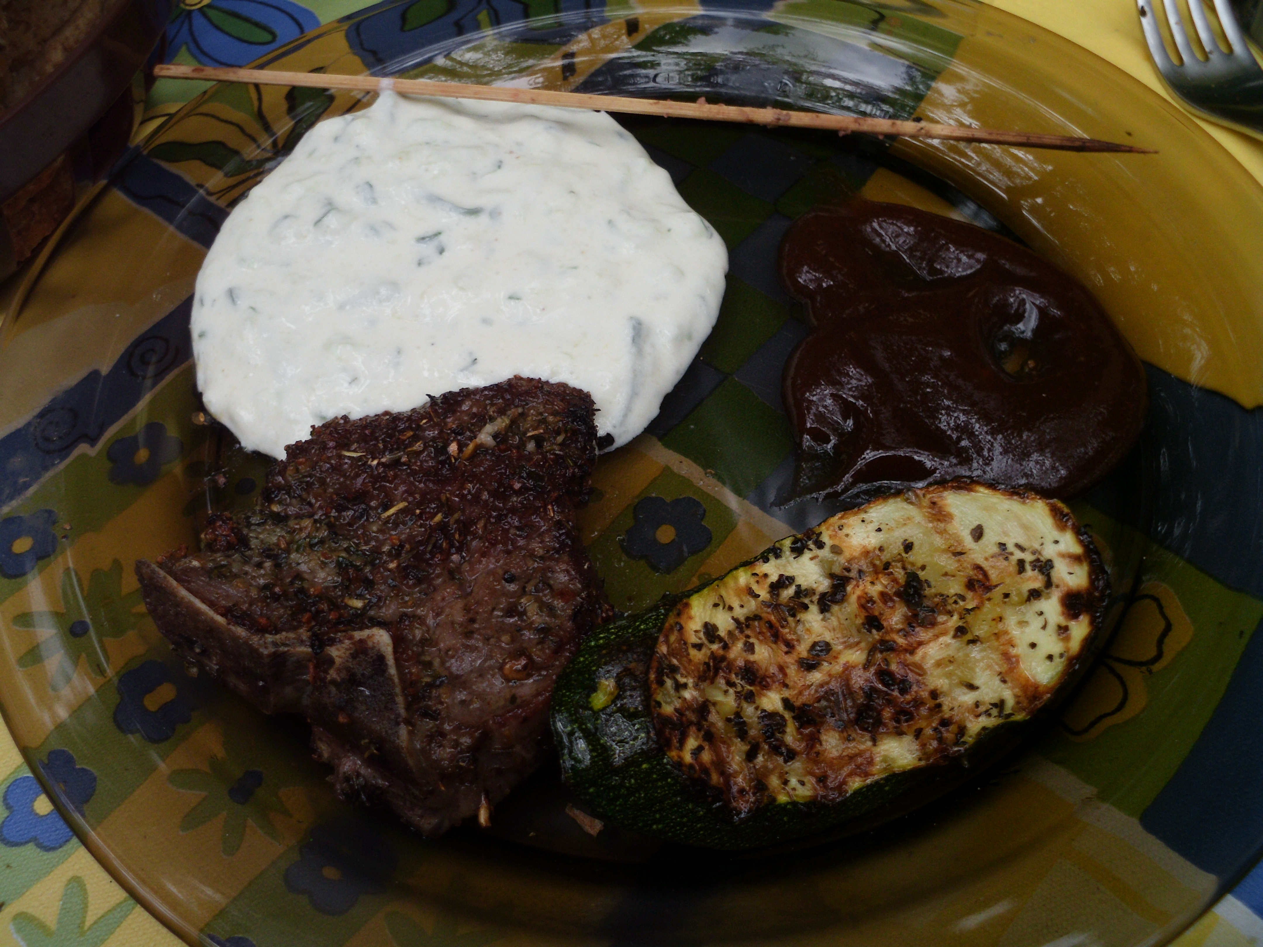 Na początek do przyrumienionych bananów z odrobiną cynamonu spróbowałem Moet & Chandon Brut oraz Torrontesa 2009 od Finca el Origen. Moet wydał się zbyt agresywny i uwydatniał posmak cynamonu, a Torrontes ze swoją lekkością dobrze komponował się z bananami. Do grillowanych warzyw – papryk żółtej i czerwonej oraz cukinii idealnie wpasowało się Chateau de Champteloup Cabernet d'Anjou 2008; lekko mineralne z mocą czerwonych owoców nie dało innym winom szansy, chociaż Hofstatter po mocnym schłodzeniu dobrze odnalazł się w zestawie z cukinią.