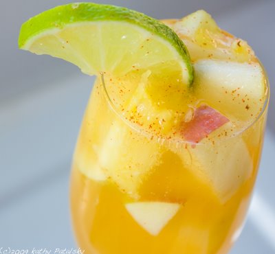 1 średnia pomarańcza, umyta, przekrojona na pół i pokrojona w cienkie plasterki 1 średnia brzoskwinia, a jeszcze lepsza będzie nektarynka, umyta, pozbawiona pestek i pokrojona w kostkę 1 mango, obrane ze skórki, bez pestki, pokrojone w kostkę 2 kiwi, obrane i pokrojone w plasterki