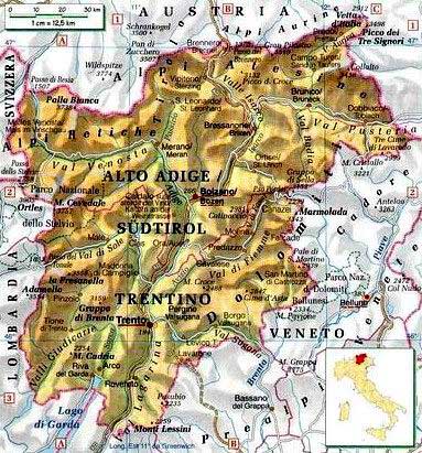 Różnice między Trentino i Alto Adige są ogromne, choć historycznie zwykle występują razem. Do zakończenia I Wojny Światowej oba regiony należały do Austrii, jednak Trentino od zawsze było włoskojęzyczne, natomiast Alto Adige – niemieckojęzyczne. Różnice pomiędzy regionami wykraczają daleko poza warstwę językową. Im bliżej Alto Adige, tym bardziej widać różnice kulturowe pomiędzy wioskami, zmienia się również ich struktura – zjawisko dodatkowo wzmocnione przez zupełnie odmienne prawo spadkowe, a co za tym idzie zupełnie inne nastawienie do zagospodarowania ziemi i roli rolnika.