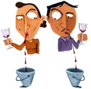 Z wypluwaniem jest jak ze skakaniem - trzeba spróbować. Oczywiście, że z początku cześć wina (lub wody) może wylądować nam na ubraniu, a wdzięku w tym będzie co kot napłakał, ale z pewnością uratuje nas to przed tzw. zalaniem się w pestkę.