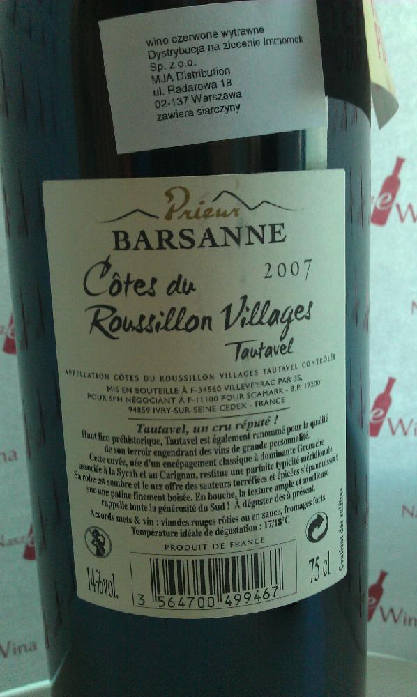 Cotes du Roussillon Village Tautavel Prieur Barsanne 2007