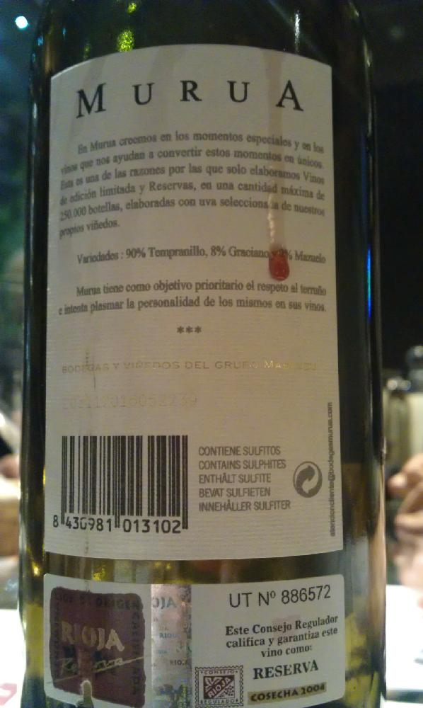 Reserva Rioja Bodegas Murua 2004