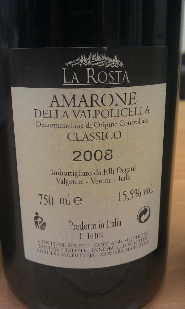 Amarone della Valpolicella "La Rosta" Degani 2008