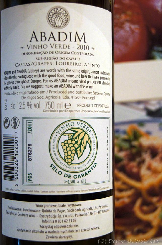 Abadim Vinho Verde Qunita de Pacos Soc. Agricola 2010