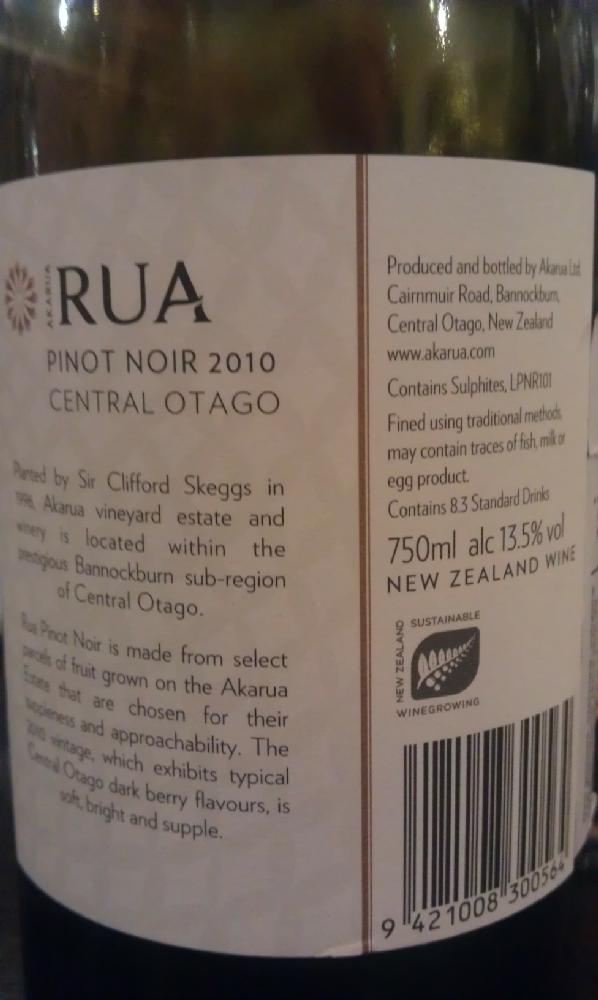Pinot Noir Rua Akarua 2010