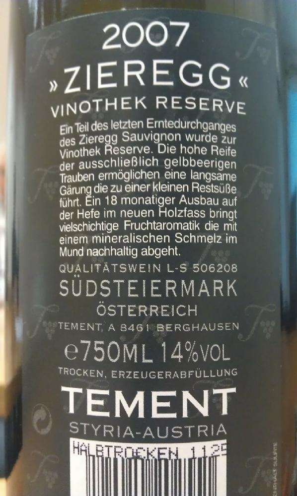 Sauvignon Blanc Zieregg Vinothek Reserve Weingut Tement 2007