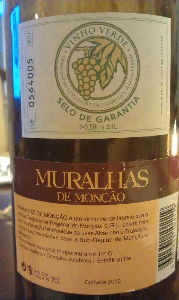 Muralhas de Moncao Vinho Verde Branco Adega Cooperativa de Moncao 2010