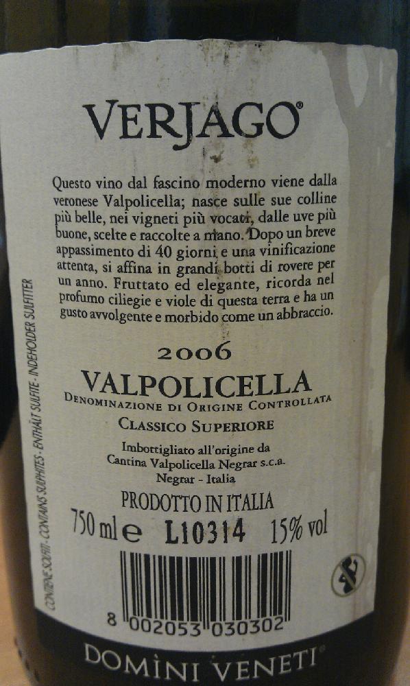 Verjago Valpolicella Classico Superiore Domini Veneti 2006