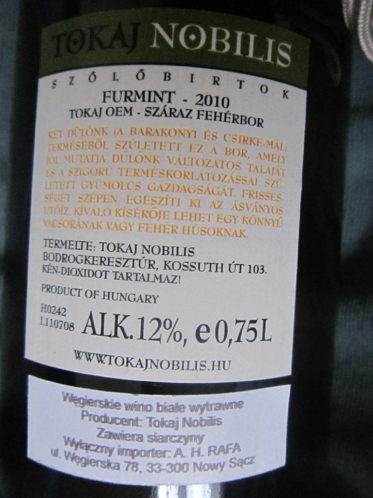 Birtokbor Tokaj Nobilis 2010