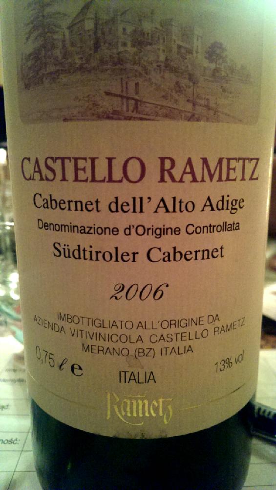 Cabernet dell'Alto Adige Sudtiroler Castello Rametz 2006