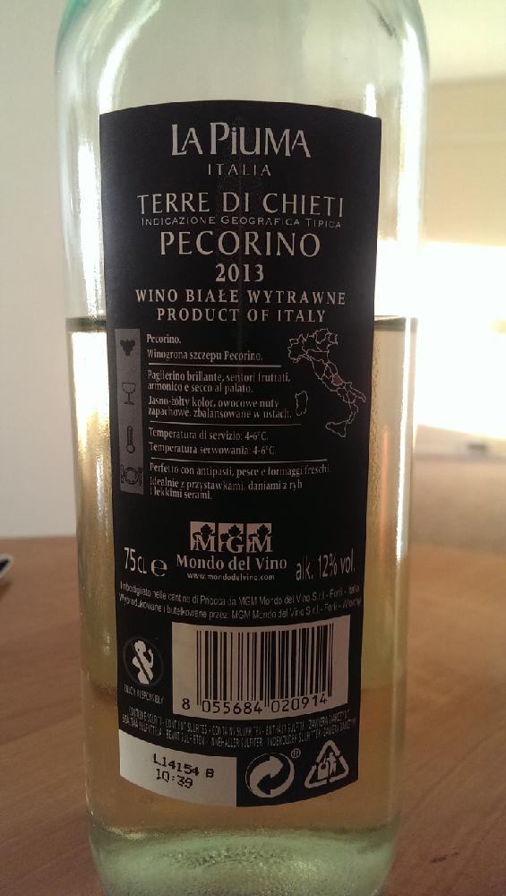 Pecorino La Piuma Terre di Chieti Mondo del Vino 2013