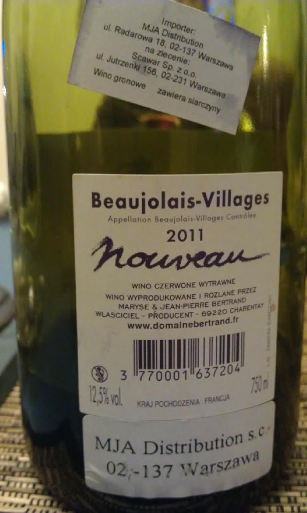 Beaujolais Nouveau Domaine Bertrand 2011