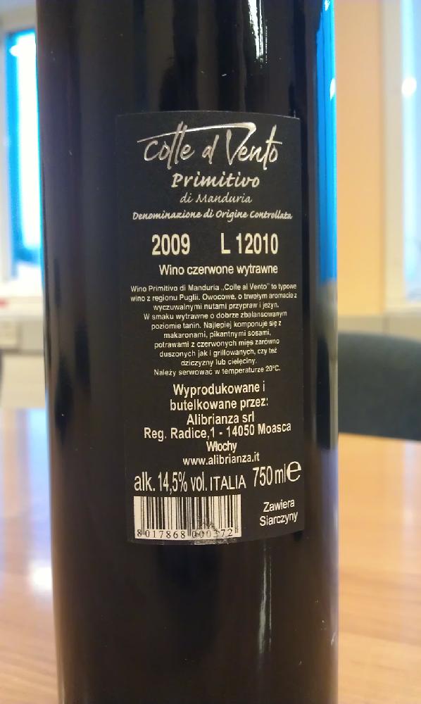 Colle al Vento Primitivo di Manduria DOC Alibrianza 2009