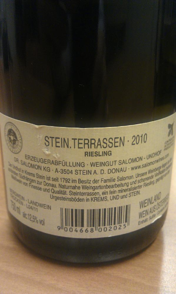Riesling Steinterrasen Weingut Salomon - Undhof 2010