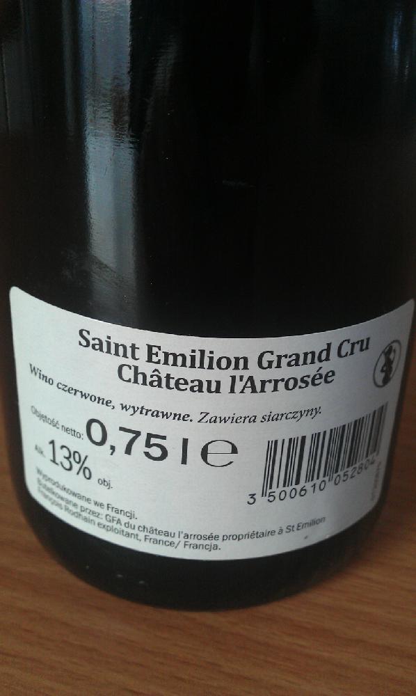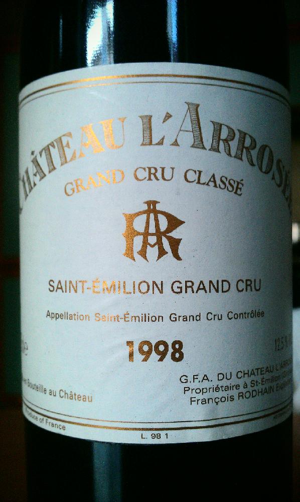 Grand Cru Classe Saint Emillion Grand Cru Chateau L’Arrosse 1998