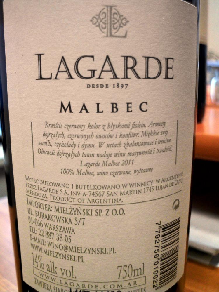Całkiem niezły Malbec. Można znaleźć wiśnię, śliwki do tego nuty liści. Przyjemne taniny, nic tu nie wadzi. 6 Nika 2013/05/21