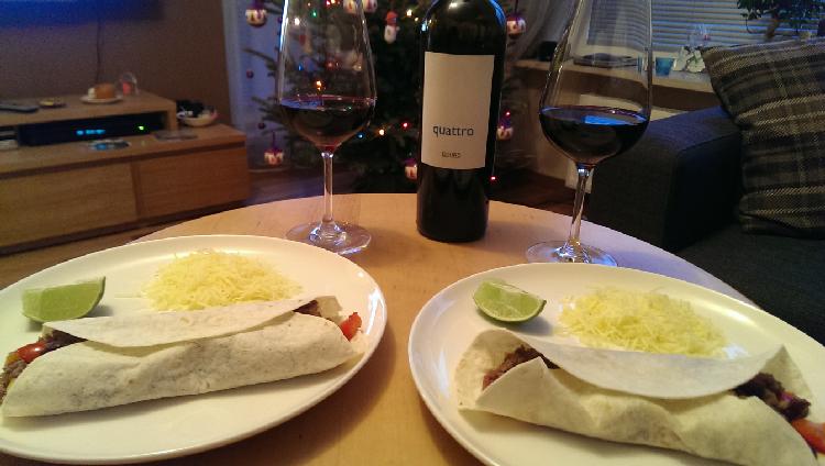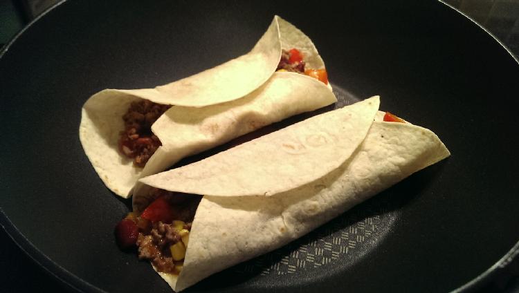 Mięso mielone (pół woł./pół wieprz.), czerwona cebula, żółta i czerwona papryka, puszka pelati, puszka czerwonej fasoli, kukurydza, ser żółty, limonka.