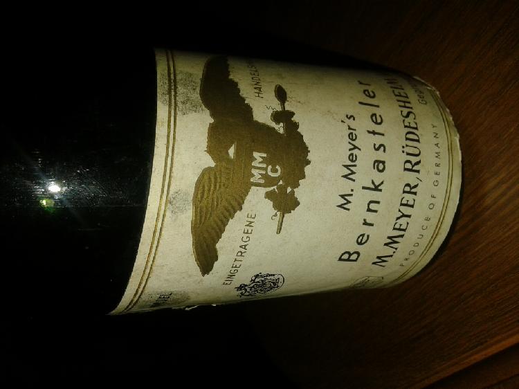 Dziwny prezent ślubny. Wino ze środkowej Mozeli, ale chyba z pospolitego szczepu, pewnie z muller-thurgau, bo gdyby z rieslinga to byłaby informacja. Poza tym wino bardzo stare, producent chyba nieznany, a rocznik 65 był średni albo słaby i w winie widać ubytek ze dwóch centymetrów szyjce.