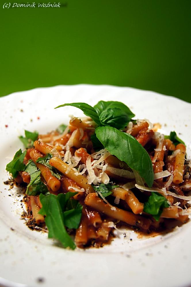 sos pomidorowy ( + 2 ząbki czosnku, łyżeczka nasion z kolendry, pieprz )