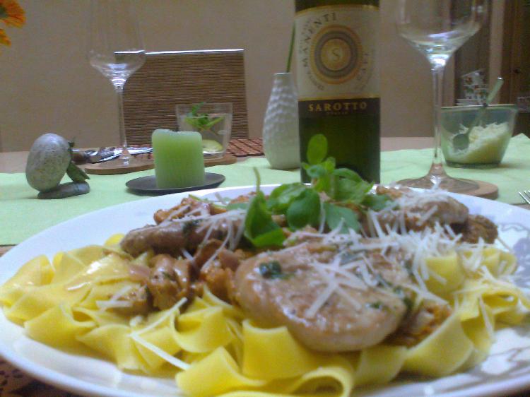 Miały być borowiki, ale niestety nie mogłam kupić, kurki też się sprawdziły - z dodatkiem majeranku - warte grzechu. Danie wspaniale komponowało się z Gavi