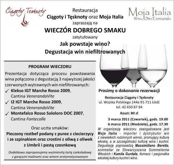Wieczór dobrego smaku w restauracji Ciągoty i Tęsknoty
