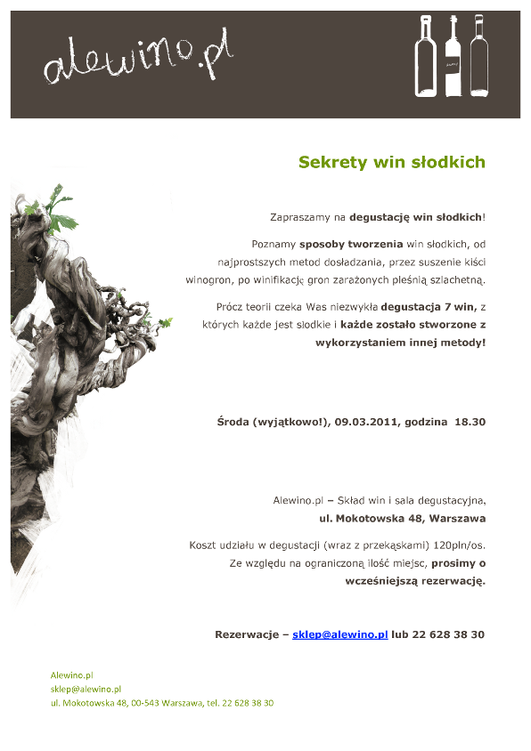 Degustacja pt. "Sekrety win słodkich" w alewino.pl