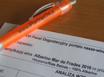 Od pewnego czasu wybieramy podczas panelu najlepsze spośród degustowanych danego wieczoru win. Jeżeli jest tylko jedno wino o najwyższej ocenie, wybór dokonuje się sam. Jeśli są 2 lub 3 to wybieramy przez głosowanie. Tym razem na miano najlepszego wina wieczoru wybrane zostało hiszpańskie wino Albarino Mar de Frades 2010. Wygrało zasłużenie. Bardzo dobre. Szkoda, że, chyba, nie do kupienia w Polsce. Przywieźliśmy je z Hiszpanii. Podczas naszych ostatnich pobytów zachwyciliśmy się tym gronem.