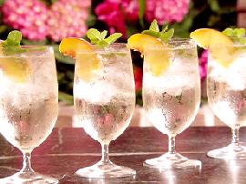 Składniki: 650 ml soku żurawinowego 2 łyżki cukru 1 łyżeczka posiekanego świeżego rozmarynu 12 listków mięty 60 ml świeżego soku z limonki 700 ml schłodzonej wody gazowanej 350 ml białego rumu kruszony lód