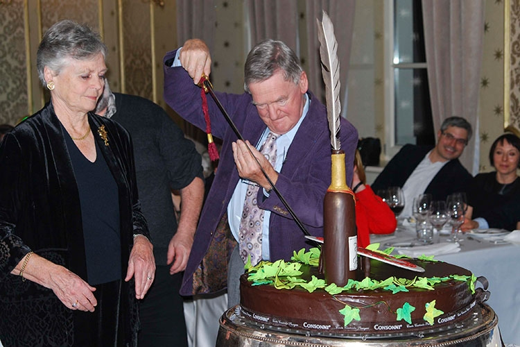 Pieczeń z jelenia była wspaniała, znakomicie współgrał z nią świetny Shiraz z Barossa Valley - William Randel 2010 od Horn-Clarke Wines. Następnie podano deskę polskich serów zagrodowych z miodem spadziowym oraz migdałami, do których podano maderę Blandys 2003. Na deser był tort czekoladowy wyprodukowany prze firmę Consonni, wyglądający jak dzieło sztuki, który Laureat musiał pokroić ułańską szablą!