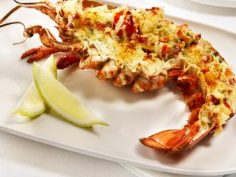 10. Ułóż kawałki pancerza homara z w płytkim naczyniu żaroodpornym. Łyżką nakładaj masę z mięsa homara do i wokół nich. Hojnie posyp serem. Ustaw około 8 cm pod rusztem i opiekaj minutę albo aż ser się zrumieni. Podawaj natychmiast.