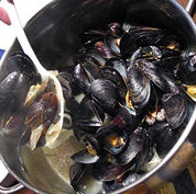 3. Do sosu wrzuć sparzone mule. Poczekaj aż sos się zredukuje.