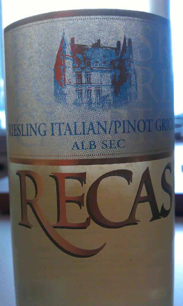 Riesling Italian / Pinot Grigio Recas 2008 Wino bardzo jasne, przejrzyste, ale mało błyszczące. Pachnie mineralnie, typowo dla rieslingów, ale z przenikającymi się nutami kwiatowymi, co jest pewnie zasługa Pino Grigio. W smaku duża kwasowość, wyczuwalny alkohol. Niektórzy odebrali to wino jako wino korkowe, inni jako przejrzałe. Być może rzeczywiście trzeba spróbować inną butelkę. To wypadło słabo. Ale ktoś powiedział, że byłoby niezłe do krewetek z limonką. Niezależnie jest to na pewno wino do czego.