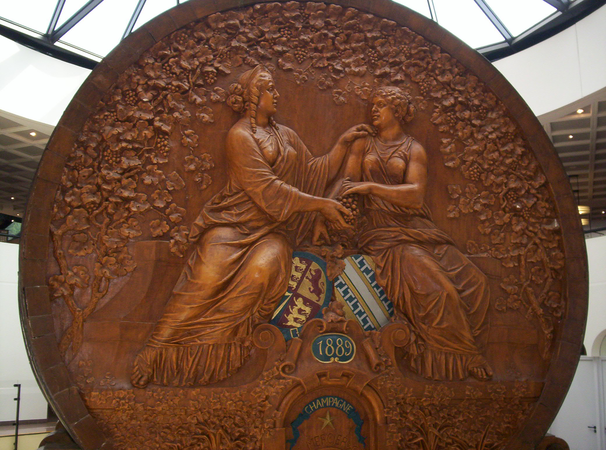 Champagne Mercier Najpopularniejsza ze wszystkich wycieczek, chyba dlatego, że Mercier to najlepiej sprzedający się szampan we Francji. Wystarczy zjawić się w godzinach urzędowania (od 11.30 do 14.00 przerwa na lunch) i uiścić opłatę za wstęp, a będziemy mogli podziwiać największą beczkę świata zbudowaną w 1889 roku wokół której zbudowana została cała część dla zwiedzających. Po krótkiej prezentacji audio-wizualnej zjeżdżamy windą 30 metrów w dół do piwnic, gdzie czeka na nas kolejka sterowana laserem, który zabiera nas na wycieczkę 18-kilometrowymi korytarzami ozdobionymi bogatymi płaskorzeźbami. W tych korytarzach odbyły się pewnego razu wyścigi rajdowe. Po przejażdżce kolejką, w sklepie z pamiątkami, czeka degustacja szampanów.