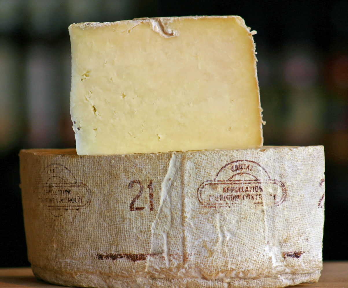 | Comté to wspaniały tradycyjny ser z górskich szałasów. Jeden z najbardziej docenianych serów Francji wytwarzany od prawie tysiąca lat z mleka krów rasy Montbéliard wypasanych wysokogórskich pastwiskach gór Jura w regionie Franche-Comté. Najlepszy pochodzi z Haut-Doubs i Haut-Jura. Aby uzyskać jeden, ważący około 35 kg krąg sera o średnicy 75 cm, potrzeba mniej więcej 530 l mleka, czyli ilość odpowiadającą dziennemu udojowi 30 krów. Produkowany metodą rzemieślniczą w 190 warsztatach zwanych 'fruitières' ("owocarnie") w płaskowyżu Jura. Jego miąższ – prasowany i wygrzewany – potrzebuje długiego dojrzewania. Najlepsze sery comté dojrzewają, w szczególnie dla nich korzystnych warunkach, w głębokich piwnicach lub w kazamatach dawnych fortów. Dojrzewanie sera trwa co najmniej 6 miesięcy, a w niektórych przypadkach nawet 2 lata. W procesie dojrzewania skórka sera staje się złotożółta lub ciemna, prawie brązowa, i twardnieje. | |||||||||||