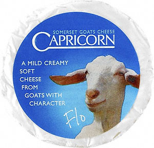 | Capricorn – to wyborny, delikatny kozi ser z Somerset. Ma kształt walca lub sześcianu o białej, lekko kredowej skórce i delikatny, kremowy smak wzbogacony podkładem cykorii i orzechów. Przed podaniem powinien poleżeć chwilę w temperaturze pokojowej. | |||||||||||