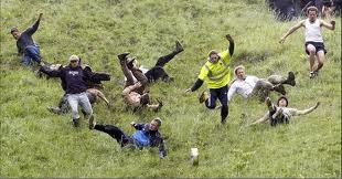 | Po dziś dzień Double Gloucester ma zaszczyt brać udział w dorocznych wiosennym „Święcie Toczenia Serów” z Cooper's Hill w Gloucestershire, podczas którego uczestnicy mają za zadanie dogonić wielkie puce sera Double Gloucester toczące się po nierównym zboczu wzgórza z prędkością przekraczającą 70 mil na godzinę. Zadanie jest praktycznie niewykonalne, a i często kończy się kontuzjami. Opowieść z 1911 roku opisuje uroczyste obchody nadejścia wiosny, podczas których wielkie koła sera udekorowane kwiatami trzykrotnie przetaczano wokół dziedzińca świątyni. Następnie, ponownie ozdobione kwiatami, były przenoszone do wioski, gdzie dzielono je pomiędzy parafian. | |||||||||||