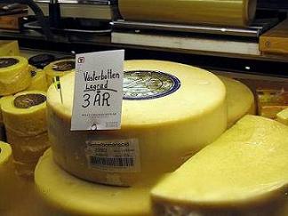 | Västerbotten powstaje na północy Szwecji. Ze względu na pokaźne rozmiary (jeden krążek waży około czterdziestu kilogramów), uchodzi za szwedzkiego "króla serów". Dojrzewa ponad jedenaście miesięcy, co czyni go suchym i podobnym do młodego Parmigiano Reggiano lub dojrzałego Cheddara. | |||||||||||