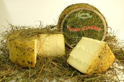 | Vento d'Estate powstaje z sezonowanego mleka krowiego i dojrzewa w beczkach z sianem górskim z Treviso, rozmarynem i miętą, które nadają mu charakterystyczny zapach. | |||||||||||
