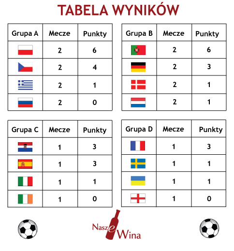 Tabela wyników Winnego Euro 2012 - stan na 13.06.2012